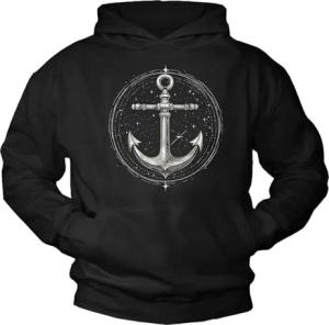 Pullover Ankermotiv Hoodie Langarmshirt mit Kapuze Anker Print Pulli Hamburg Motiv Kapuzenpullover Herren Damen Kinder Schwarz L