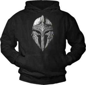 Wikinger Pullover Herren Shirt Langarm mit Kapuze Pulli Viking Motiv Helm Männer Jungs Jungen Sparta Schwarz XL