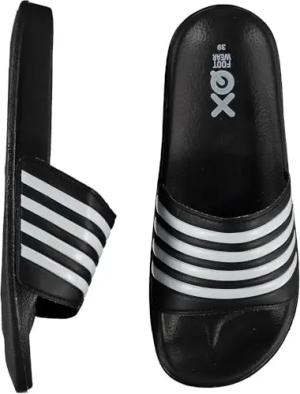 XQ - Pantoffeln Herren - Streifen - Schwarz/Weiß - Größe 41 -Badeschuhe Hausschuhe - Slippers Sommer Slide Pantoletten - Badelatschen Strand - Indoor/Outdoor