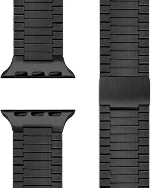 Mova Edelstahl Armband kompatibel mit Apple Watch Armband iWatch Series SE/10/9/8/7/6/5/4/3/2/1, 38/40/41/42mm, Metall Ersatzarmband mit Doppelfaltschließe, Rostfrei, Farbe:Tiefschwarz