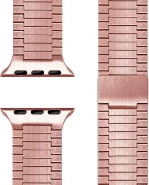 Chronos Edelstahl Armband kompatibel mit Apple Watch SE iWatch Series 10-1, 38/40/41/42mm, Magnetisches Loop-Armband aus Metall mit Schnellverschluss, Farbe: Kupferrosé