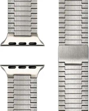 Argon Titan Armband kompatibel mit Apple Watch Armband iWatch Series SE/10/9/8/7/6/5/4/3/2/1, 38/40/41/42mm, Metall Ersatzarmband mit Faltschließe, Matt, Leicht, Rostfrei, Farbe:Titan Natur