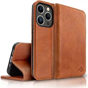 Echtlederhülle für iPhone 14 Pro Max - RFID Wallet & Magnet-Verschluss - LEVANTO (Handgefertigte Klapphülle) - Marke aus Berlin, Farbe:Braun