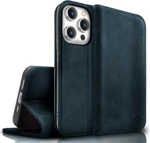 Echtlederhülle für iPhone 15 Pro Max - RFID Wallet & Magnet-Verschluss - LEVANTO (Handgefertigte Klapphülle) - Marke aus Berlin, Farbe:Petrol-Blau