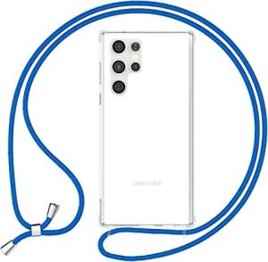 Handykette für Samsung Galaxy S24 Ultra - Transparentes Hybrid-Case & Band - HANGIT PRO (Anti-Gelb Rückseite & Verstellbar) - Marke aus Berlin, Farbe:Blau