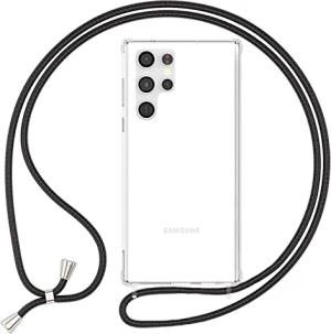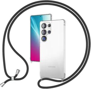 Handykette für Samsung Galaxy S24 Ultra - Transparentes Hybrid-Case & Band - HANGIT PRO (Anti-Gelb Rückseite & Verstellbar) - Marke aus Berlin, Farbe:Mitternacht Schwarz