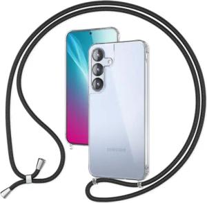 Handykette für Samsung Galaxy S25 Plus - Transparentes Hybrid-Case & Band - HANGIT PRO (Anti-Gelb Rückseite & Verstellbar) - Marke aus Berlin, Farbe:Mitternacht Schwarz