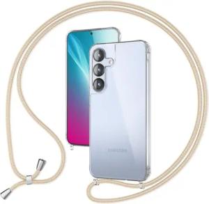 Handykette für Samsung Galaxy S25 - Transparentes Hybrid-Case & Band - HANGIT PRO (Anti-Gelb Rückseite & Verstellbar) - Marke aus Berlin, Farbe:Sandstein Beige