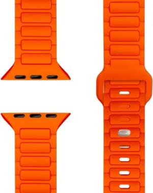 Core Magnet Armband kompatibel mit Apple Watch SE & iWatch Series 10 9 8 7 6 5 4 3 2 1, 38/40/41/42mm, Atmungsaktives Silikon Loop, Sportarmband mit Rillen Design, Farbe:Leuchtorange