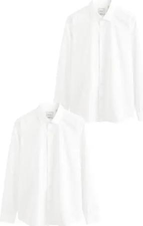 Herren 2er-Pack Pflegeleichte Skinny Fit Langarm-Hemden Weiß 42