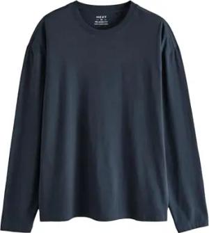 Herren Lockere Passform Relaxed Fit Langarmshirt aus 100% Baumwolle Marineblau M