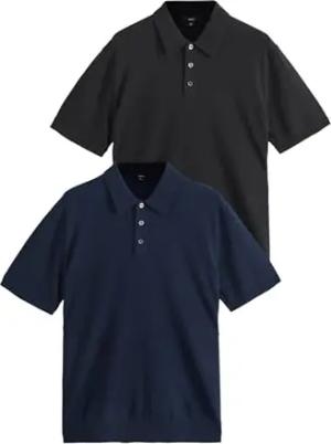 Herren Regular Fit Kurzarm-Poloshirt aus Strick mit hohem Baumwollanteil, 2er-Pack Navy Blue/Black XL