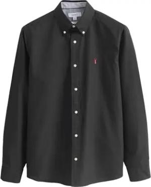 Herren Schmal Langärmeliges Slim Fit Oxfordhemd Schwarz XS