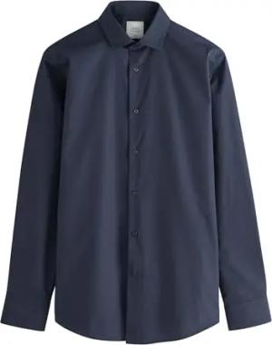 Herren Schmale Passform Pflegeleichtes Slim Fit Hemd mit Sportmanschetten Blau-Marine 44