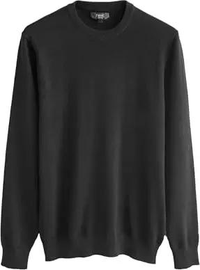 Herren Standard Pullover aus Baumwollmischung mit Rundhalsausschnitt & gebürstetem Innenfutter Schwarz XS