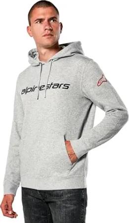 Linear Wordmark Hoodie V3 Kapuzenpullover für Herren Fleece Sweatshirt mit Kapuze Melange Grau/Rot/Schwarz XXL