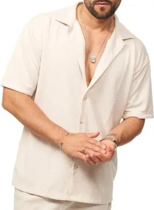 . Herren Hemd Kurzarm Strick Overshirt Knit Freizeithemd T-Shirt Oversize Regular-Fit Vintage Sommer-Look CR_9250-Ecru-S