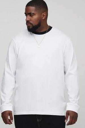 Plus langärmliges Rundhals T-Shirt - Weiß - 4XL, Weiß