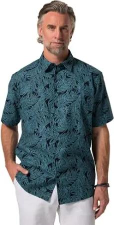 Herren große Größen Übergrößen Menswear L-8XL Leinenmix-Hemd, Halbarm, floraler Print, Kentkragen, Comfort Fit Navy blau 7XL 837861130-7XL