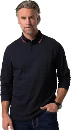 Herren große Größen Übergrößen Menswear L-8XL Poloshirt, Langarm, Strukturjersey Navy blau 84+ 836068130-84+