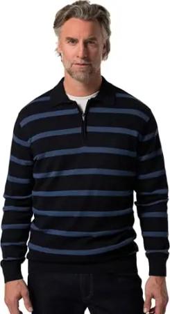 Herren große Größen Übergrößen Menswear L-8XL Strickpullover mit Polokragen, Ringel, Zipper Navy blau 84+ 838836130-84+