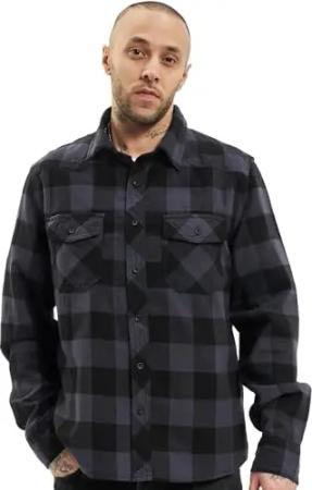 Flannel Shirt Long Sleeve, Farbe: Black, Größe: 6XL