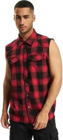 Check Shirt Sleeveless, Farbe: red/Black, Größe: 6XL