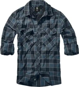 Check Shirt Long Sleeve, Farbe: Black+Charcoal, Größe: 4XL