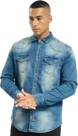 Riley Denim Shirt Long Sleeve, Farbe: Denim Blue, Größe: 5XL