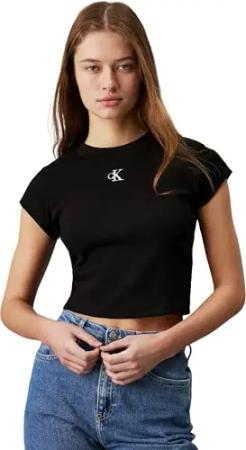 Damen T-Shirt Kurzarm Ck Rib Baby Tee Cropped, Schwarz (Ck Black), M