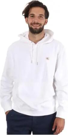 Herren Hoodie Terry Badge mit Kapuze, Weiß (Bright White), S