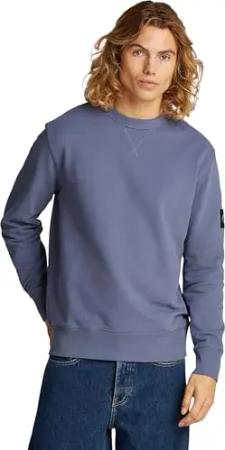 Herren Sweatshirt Badge Crew Neck aus Baumwolle, Blau (Grisaille), XXL