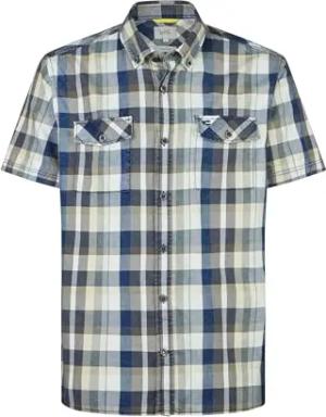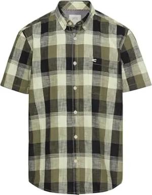 Herren Kariertes Kurzarmhemd aus Reiner Baumwolle Khaki, Menswear-M