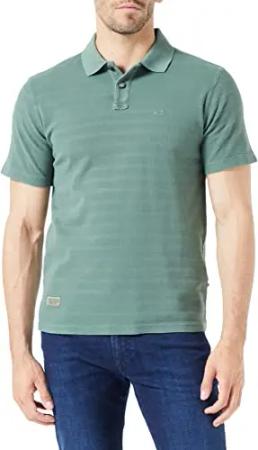 Herren Kurzarmshirt mit geripptem Kragen Grün, Menswear-M
