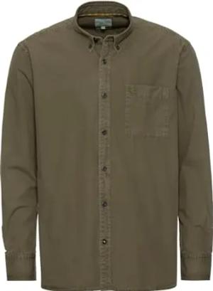 Herren Langarm Hemd aus Reiner Baumwolle Oliv-Braun, menswear-3XL