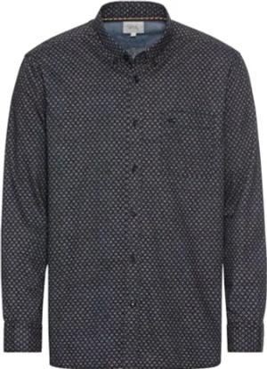Herren Langarmhemd mit Minimal-Print Dunkelblau-Rot, Menswear-XXL