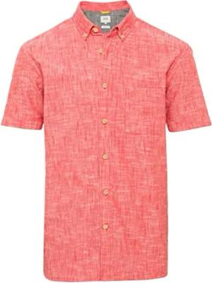 Herren Meliertes Kurzarmhemd aus Reiner Baumwolle Rot, Menswear-S