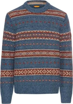 Herren Rundhals Pullover mit Kontraststreifen Blau-Rot, menswear-4XL
