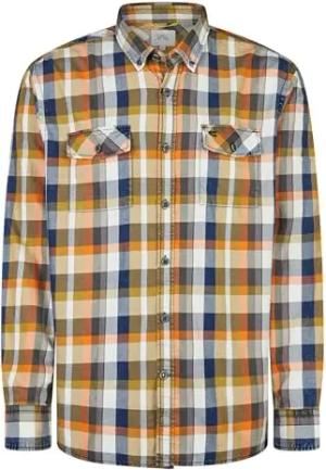 Herren Kariertes Langarmhemd aus Baumwolle Beige, Menswear-L