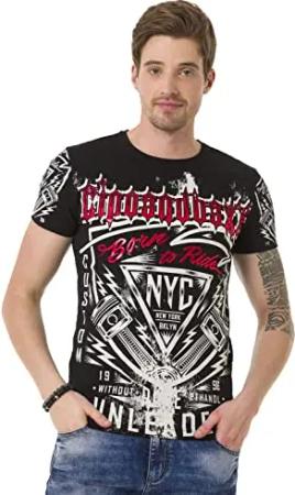 Cipo&Baxx Herren Herren T-Shirt mit Foil-Print (Small, Schwarz)