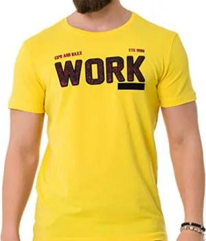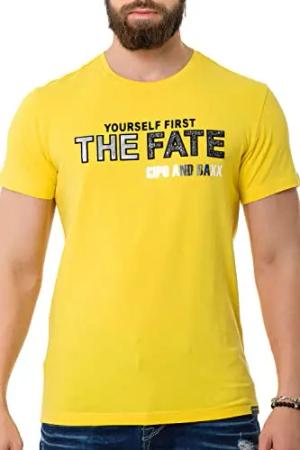 Herren T-Shirt Design Shirt Kurzarm Freizeitshirt Baumwolle Rundhalskragen CT734 Gelb L