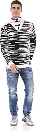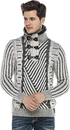 Herren Pullover – Stylischer Strickpullover im modernen Design mit hohem Perfekt für Freizeit, Alltag & Coole Streetwear Outfits - CP245 Weiß Schwarz M