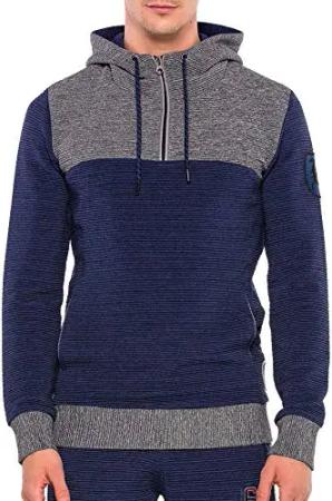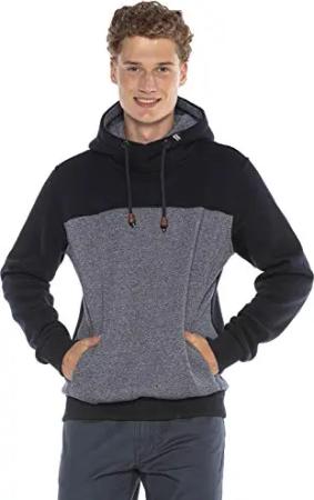 Herren Hoodie Sweatshirt CL372 Dunkelblau Grau – Stylischer Pullover im Casual Streetwear Look mit Kängurutasche – Bequemes Oberteil für Alltag & Freizeit - CL372 Dunkelblau Grau XXL