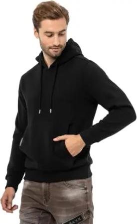 Herren Kapuzenpullover Basic Hoodie Premium Sweatshirt Sweater CL557 Schwarz L
