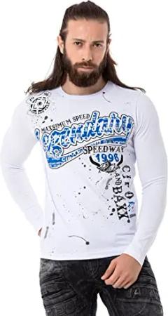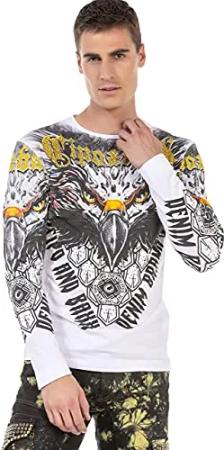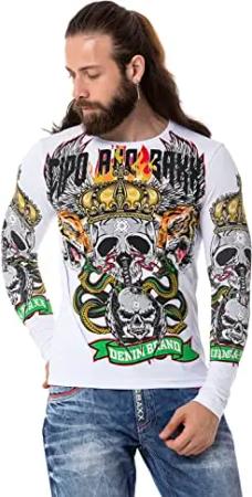 Herren Langarmshirt Aufdruck Strasssteine Longsleeve Sweatshirt Shirt CL488 Weiß M