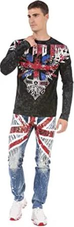 Herren Langarmshirt Longsleeve Print Farbig Batik Sweatshirt Shirt CL485 Schwarz L