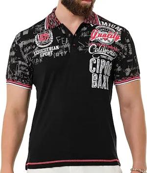 Herren Poloshirt Print Polokragen T-Shirt Kurzarm CT738 Schwarz XL