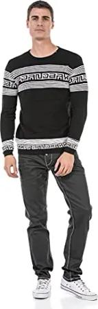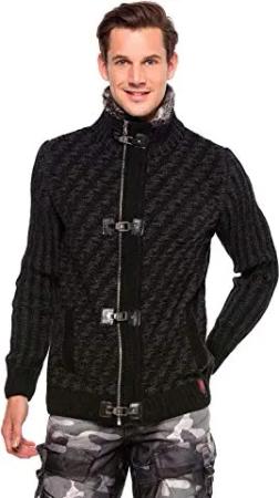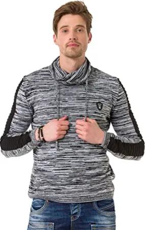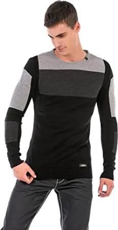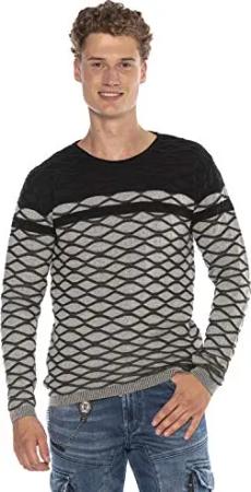 Herren Pullover CP200 Schwarz Grau – Stylischer Strickpullover im modernen Design mit hohem Perfekt für Freizeit, Alltag & Coole Streetwear Outfits - CP200 Schwarz Grau S