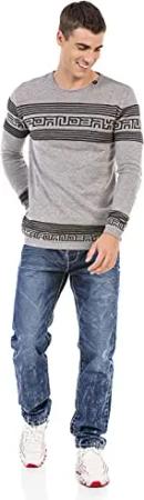 Herren Pullover CP264 Grau – Stylischer Strickpullover im modernen Design mit hohem Perfekt für Freizeit, Alltag & Coole Streetwear Outfits - CP264 Grau M