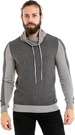 Herren Pullover – Stylischer Strickpullover im modernen Design mit hohem Perfekt für Freizeit, Alltag & Coole Streetwear Outfits - CP215 Schwarz Grau S
